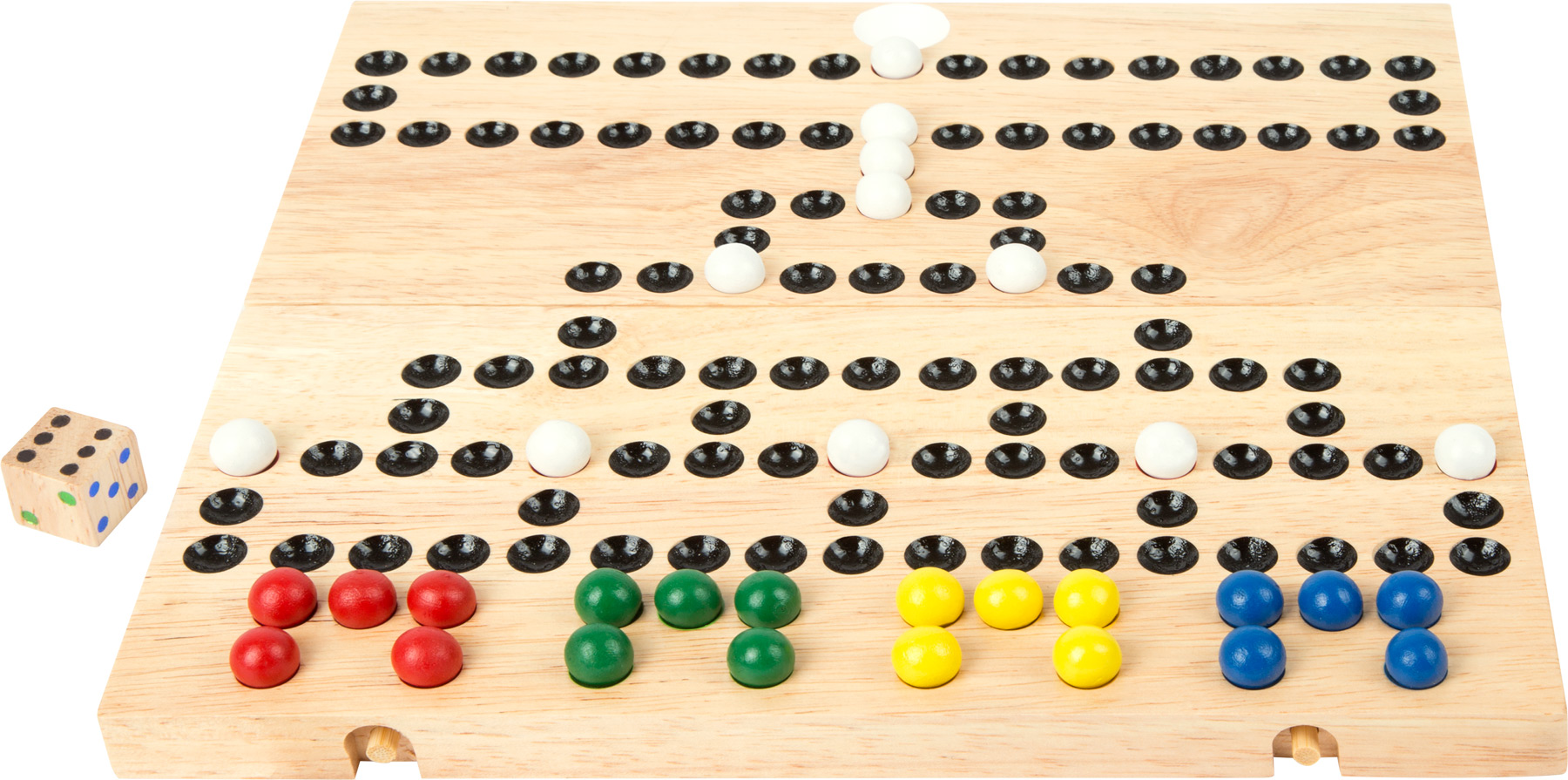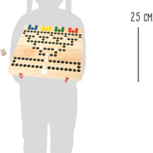 Hauskaa koko porukalle! Tämä tukeva puinen noppapeli sopii kahdesta neljälle pelaajalle, ja värikkäät pallonappulat tuovat peliin iloa. Taitettava pelilauta tekee pelistä helpon ottaa mukaan – blokkaa vastustajan reitti ja etene fiksuilla siirroilla!