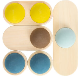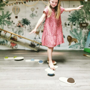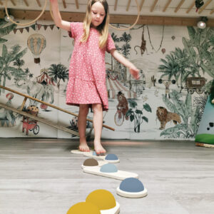 Hauskaa tasapainoilua pienille seikkailijoille! Nämä kaksipuoliset puiset tasapainokivet tarjoavat monipuolista liikuntaa ja haastetta samalla, kun ne kehittävät tasapainoa, koordinaatiota ja kehotietoisuutta. Jokaisen kiven alla on erimuotoinen vaahtomuovinen puolipallo, joka tekee jokaisesta kivestä hieman erilaisen haasteen – välillä heiluvan, välillä vakaamman.