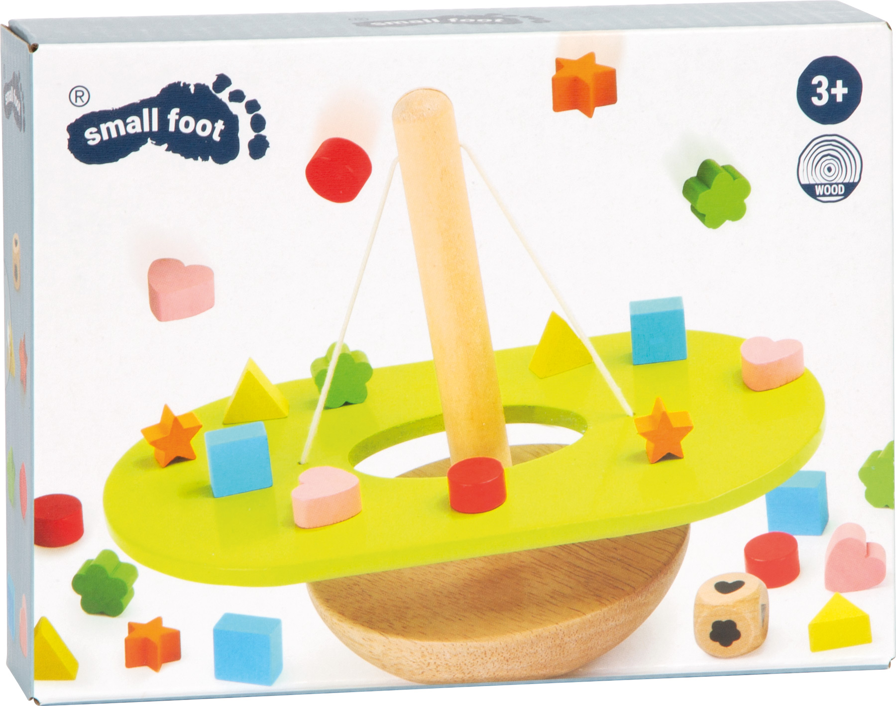 Hauska motorinen peli, jossa noppa näyttää, mitä palaa lisätään keinuvalle alustalle. Tarkoitus on pinota paloja niin, etteivät ne putoa ja keinu pysyy tasapainossa. Pienet kädet harjoittelevat hienomotoriikkaa, kärsivällisyyttä ja silmä–käsi-koordinaatiota leikin varjolla – ja jännitys kasvaa loppua kohden!