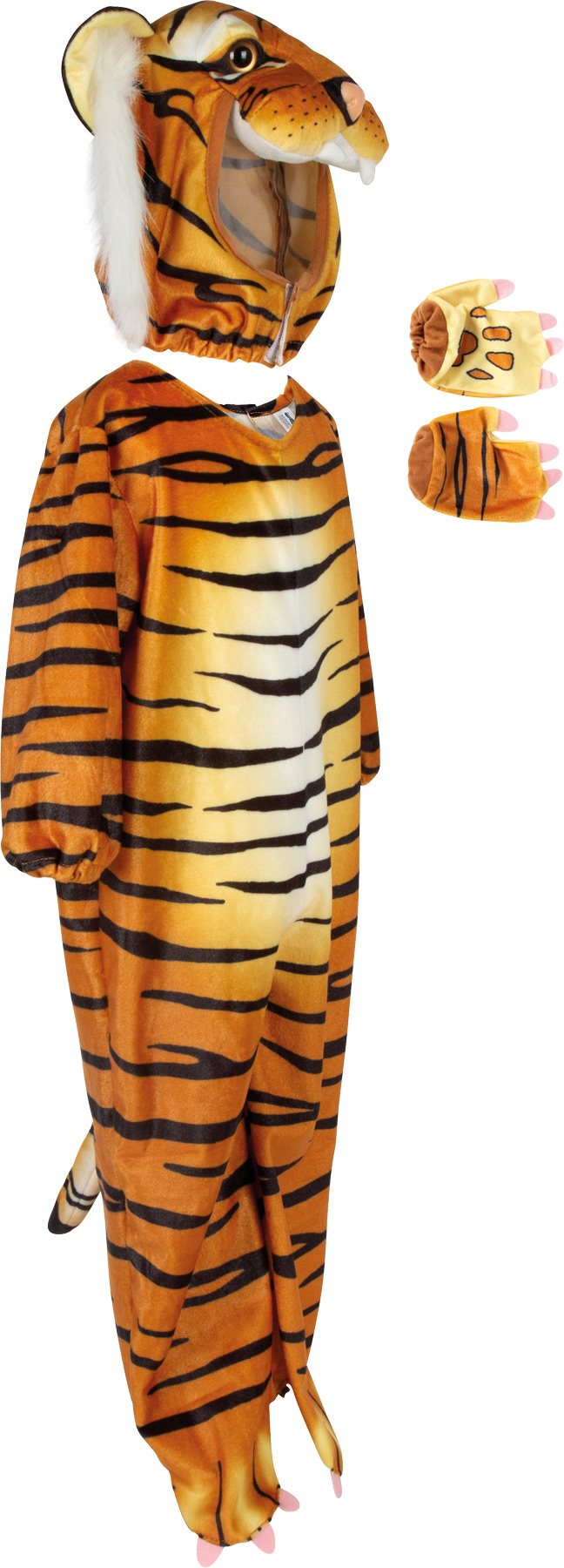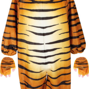 Pehmeästä kankaasta tehty tiikeriasu muuttaa lapsen hetkessä viidakon kuninkaaksi. Realistinen raidallinen kuosi, tassuhanskat ja joustoresorit hihoissa takaavat mukavan istuvuuden ja näyttävän lookin. Sopii naamiaisiin, päiväkodin juhliin tai ihan vain leikistä leikkiin – rooliasu rohkaisee mielikuvitusta ja liikkumisen iloa.