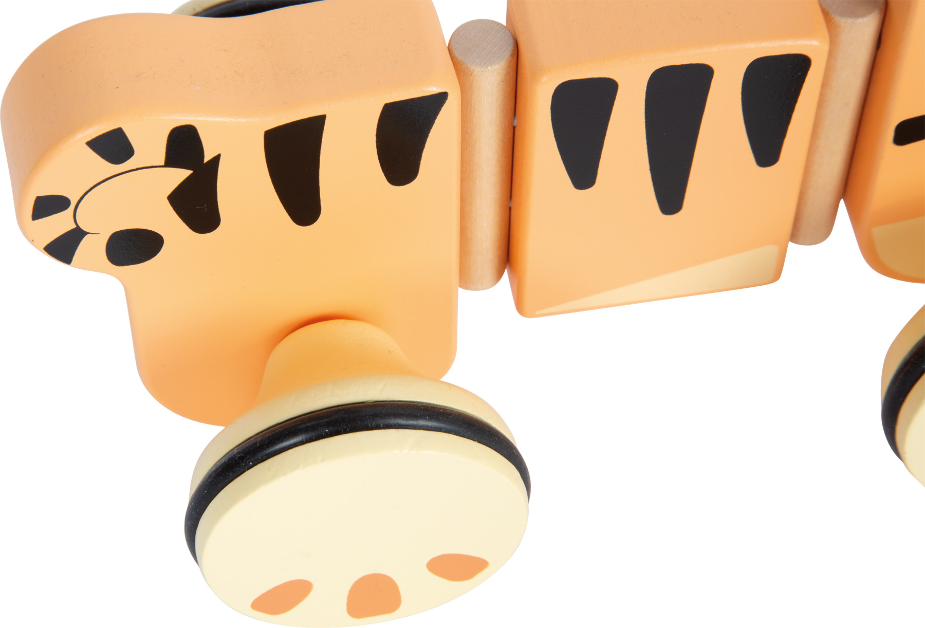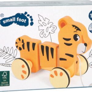 Tämä FSC® 100% -sertifioidusta puusta valmistettu, lempeästi rullaava vedettävä tiikeri kulkee mukana, kun pienokainen harjoittelee kävelyä. Kolmiosainen, liikuteltava runko “juoksee” perässä, mikä innostaa liikkeeseen ja vahvistaa motoriikkaa. Kumipäällysteiset, hiljaiset pyörät ovat lattiaystävälliset ja tekevät liikkeestä miellyttävän tuntuisen – mukana myös hihna helppoon vetämiseen.
