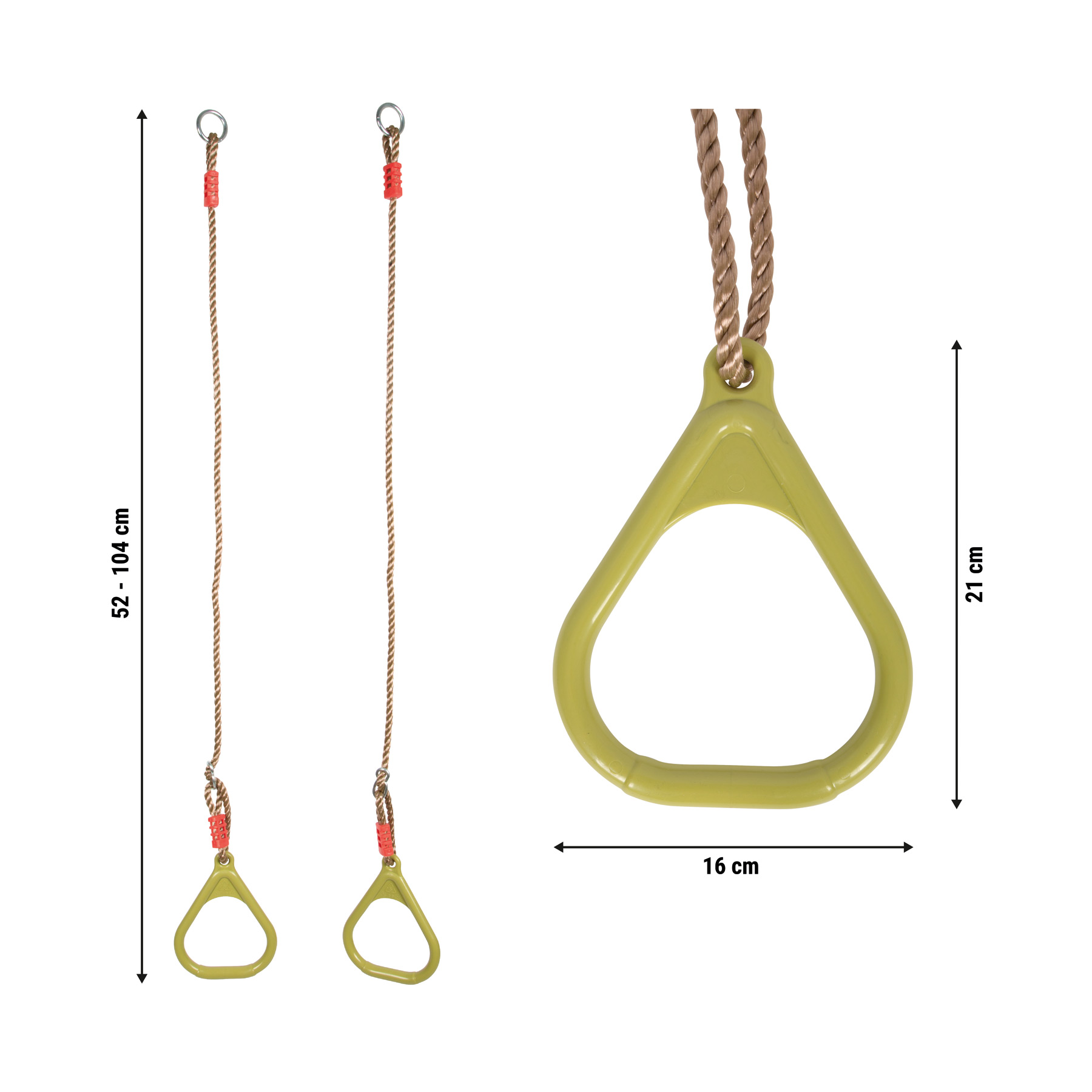 Pituussäädettävät köydet: renkaiden korkeus 52–104 cm
